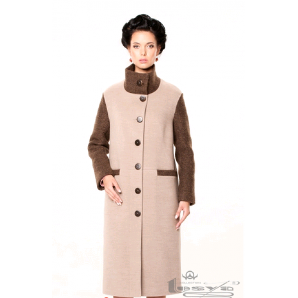 Жіноче пальто в повсякденному стилі з утеплювачем - слімтекс. Пальто комбіноване з різних видів тканини, прямого силуету, з підкладкою. Застібка центральна на ґудзики з петлями. Комір стійка. Кишені листочки розташовані в горизонтальних підрізах поличок. На спинці центральний шов і горизонтальний підріз на рівні підрізів поличок. Рукава втачні, довгі.