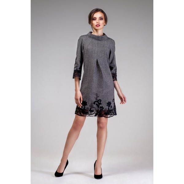 Дуже затишна, гарна і модна сукня з актуального нинішньої осені твіду подарує вам тільки позитивні емоції. Вдалий і нетривіальний фасон, злегка приталений, з А-подібною спідницею, відмінно виглядатиме на будь-якій фігурі. Поділ і рукава окантовані органзою з дивовижною вишивкою, що плавно переходить у твидову тканину. Оригінально виконана горловина, від якої ефектно розходяться шви. Сукня тепла, не марка, чудово тримає форму – вам буде приємно і комфортно носити її хоч кожен день! Склад: 50% вовна, 50% акрил.